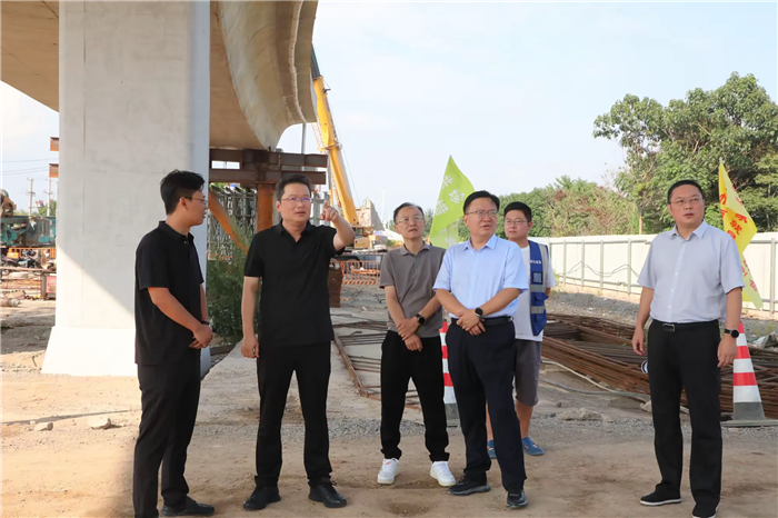 8月23日,市公路事業(yè)發(fā)展中心黨委書記、主任周鵬、副主任張棟一行至S244線G209跨線橋改造項(xiàng)目一線視察,現(xiàn)場(chǎng)聽取負(fù)責(zé)人匯報(bào)原橋改造、新建橋梁工作部署,了解施工進(jìn)展及節(jié)點(diǎn)計(jì)劃后,周主任就下步工作部署提出指導(dǎo)意見,昌通路橋總經(jīng)理趙鑫陪同。